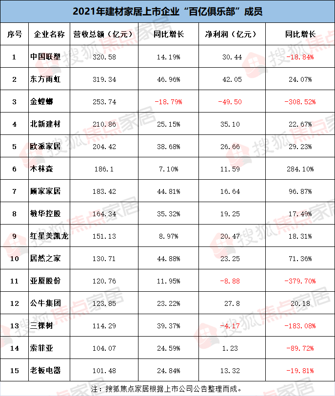 2021年建材家居行业15家营收过百亿 名单公布